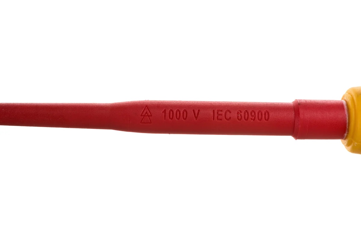 Отвертка имеет уменьшенный диаметр к концу стержня, это обеспечивает удобство в работе с винтами клемм автоматов, пускателей, нулевых шин и т.д.