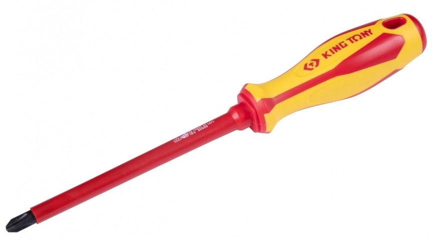 Диэлектрическая отвертка используется для работ с резьбовыми соединениями PHILLIPS, находящимися под напряжением до 1000 В благодаря изоляционному покрытию.