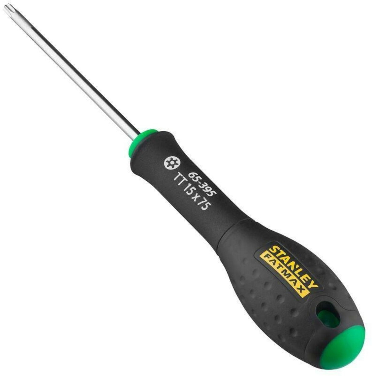 Отвертка Stanley под шлиц Tamperproof Torx Stanley FatMax с рукояткой, которая отлита поверх стержня, что образует практически неразрушимое соединение деталей. Стержень изготовлен из хромованадиевой стали для высокой прочности и уменьшения вероятности сколов. Большая удобная рукоятка обеспечивает большой момент и максимальный комфорт при работе. Сужение рукоятки обеспечивает более высокий уровень контроля отвертки, когда требуется повышенная скорость и точность прикладываемого момента. Дробеструйнуая обработка помогает защитить жало от коррозии и прикладывать больший момент. Гладкий куполовидный край рукоятки обеспечивает высокую скорость и комфорт при работе.