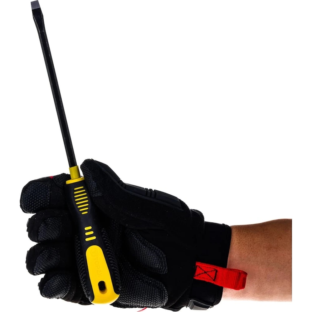 Отвертка шлицевая TOPEX предназначена для выполнения механических работ, а также работ, выполняемых мастерами-любителями. Стержень изготовлен из прочной хромованадиевой стали, обеспечивающей долгий срок службы инструмента. Магнитное жало из закаленной стали облегчает работу с инструментом. Эргономичная пластмассовая рукоятка, покрытая антискользящим материалом, обеспечивает безопасность и комфорт во время работы.