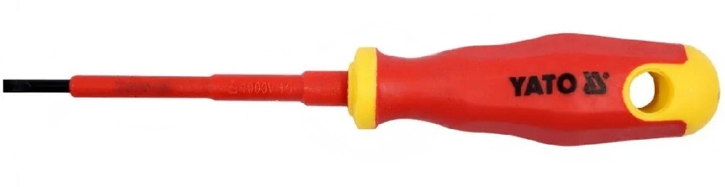 Отвёртка диэлектрическая YATO YT-2820 SL8 x 175 мм. - Отвёртка шлицевая диэлектрическая применяется при работах с резьбовыми соединениями, находящимися под электрическим напряжением. Стержень отвертки выполнен из инструментальной стали. Отвертка имеет 1000В защиту, что позволяет работать с конструкциями под напряжением. Благодаря эргономичной форме рукоятки снижается усталость при длительной работе.