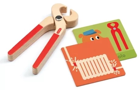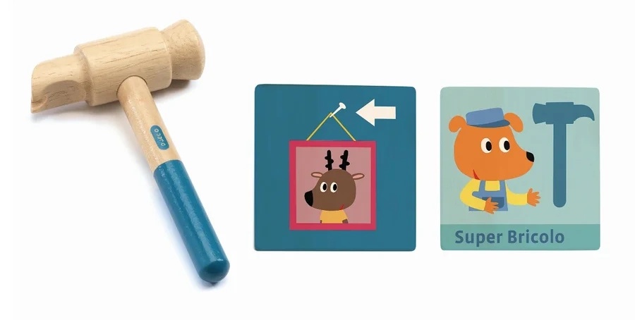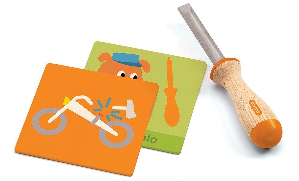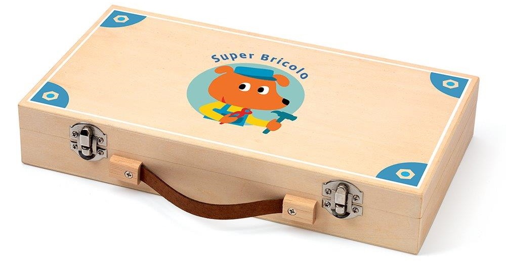 С набором деревянных инструментов DJECO «Super Bricolo», состоящим из 7 предметов, дети от 3 лет могут дать волю своему воображению и придумывать забавные истории поделок, которые можно разыграть. Набор инструментов поставляется в большом деревянном футляре и изготовлен по высоким стандартам. Кейс легко открывается, а прочная ручка обеспечивает удобную транспортировку. Внутри находится отвертка, пила, молоток, плоскогубцы, карточки-шаблоны и дрель. Все находится в надежном и надежном месте в футляре.