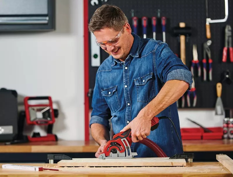 Удобная универсальная пила Einhell TC-CS 89 предназначена для осуществления резки и пропилов в дереве, паркете, ламинате, ОСБ, ДВП, ДСП, фанере, пластике и керамической плитке при использовании соответствующего пильного диска. Прочная алюминиевая подошва с превосходными скользящими свойствами обеспечивает чистую, точную и непрерывную распиловку и обеспечивает оптимальную устойчивость на любой высоте. Пильное полотно из высококачественного твердого сплава обеспечивает чистый пропил с максимальной глубиной пропила 27 мм благодаря пильному полотну диаметром 89 мм. Большая удобная эргономическая форма корпуса с мягкой накладкой обеспечивает хорошую фиксацию инструмента в руках, создавая дополнительный комфорт, а наличие защитного кожуха делает работу с ручной универсальной пилой Einhell TC-CS 89 удобной и безопасной.