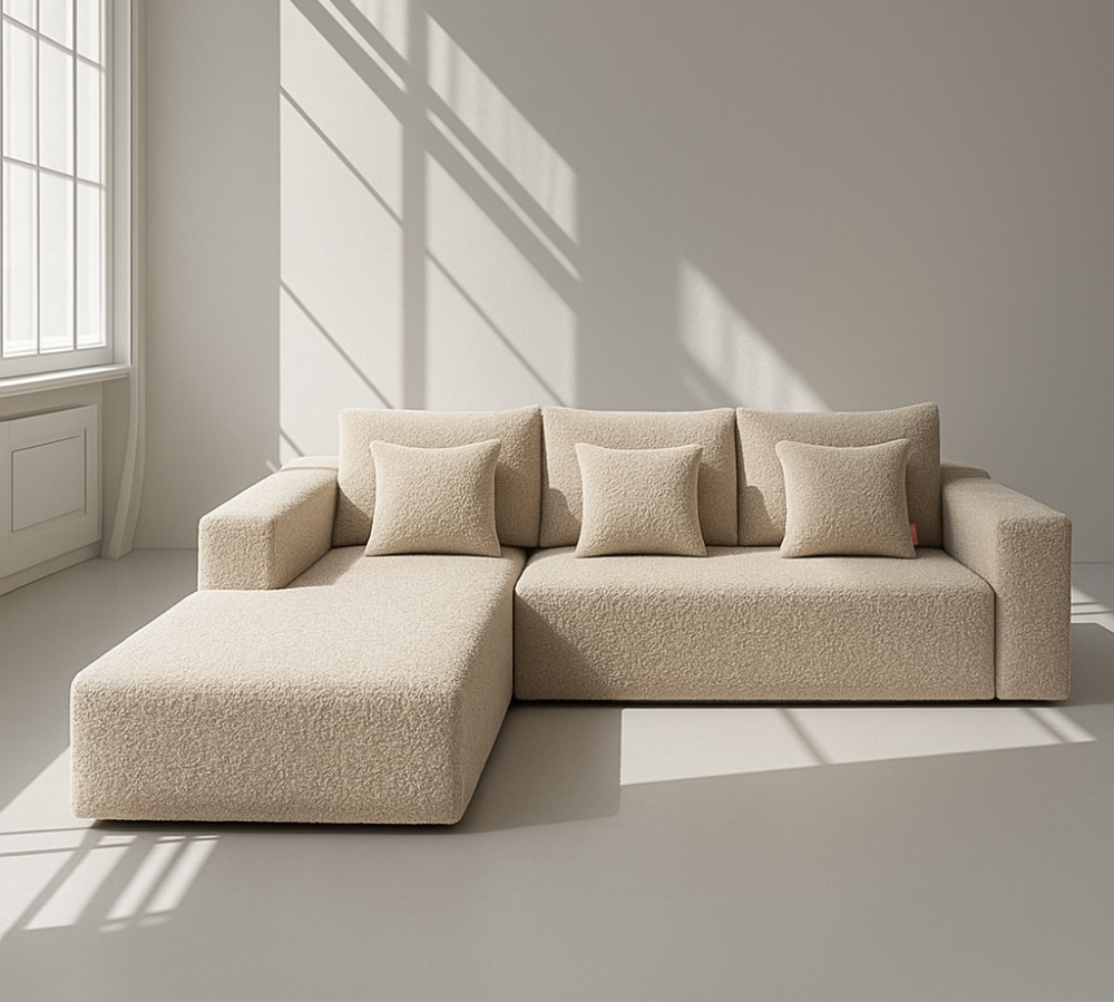 Этот модульный угловой диван с плавными, объемными формами идеально подходит для светлых интерьеров или пространств в натуральном стиле.
