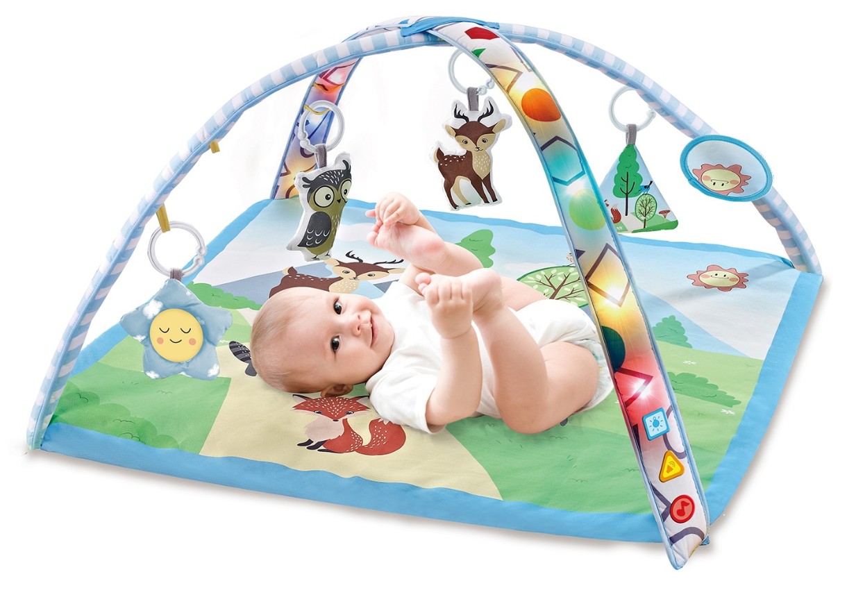 Оснащен арками и пятью различными подвесными игрушками, чтобы ребенок мог играть часами.