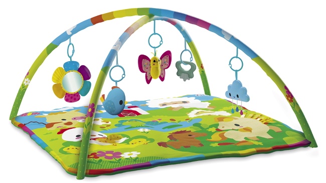 Хотите, чтобы время, проведенное на животике вашего малыша, было приятным? Детский игровой комплекс Happy Farm — это именно тот игровой комплекс, который подойдет каждому малышу! — С первых дней и до момента активного ползания, сидения, стояния, ходьбы и даже разговора! Красочный и приятный на ощупь, он привлекает малышей мягкой меховой вставкой в виде овечки, шуршащим крылом курочки для игры в прятки, атласными лентами в виде гривы лошади. Пять красочных игрушек, висящих на съемных дугах, доставят массу удовольствия малышу, который будет играть с прорезывателем для зубов, пищалкой, погремушкой и безопасным для ребенка зеркалом. Гармония цветов, приятные тактильные текстуры, разнообразные звуки обеспечивают захватывающий сенсорный опыт и стимулируют развитие познавательных и моторных навыков. Давайте расти и развиваться вместе!