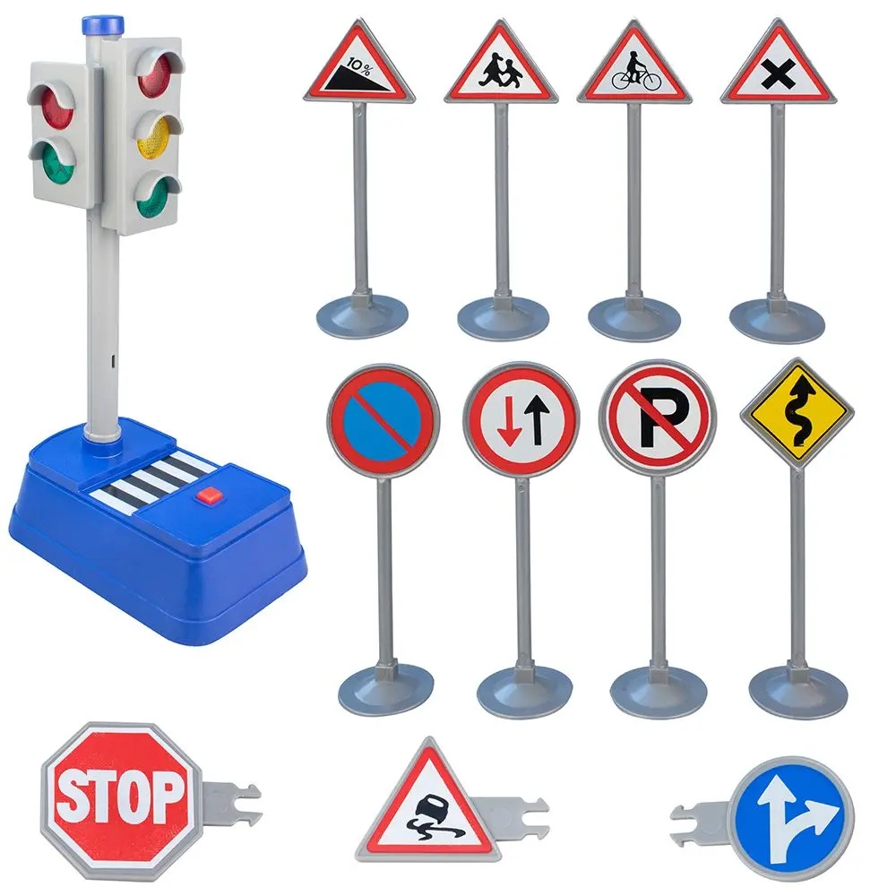 Дорожные знаки играют основную роль в жизни современного человечества, ведь именно они помогают регулировать движение на дорогах между пешеходами и автомобилями. С игровым набором "Светофор и дорожные знаки" ребенок уже в раннем возрасте сможет познакомиться с основными знаками, используемыми на улицах города, а также понять важность светофора.