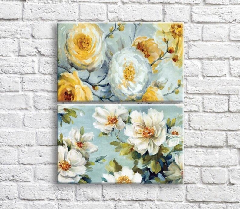 Картина ArtPoster Cream and White flowers in oil on a Blue background (3467849)