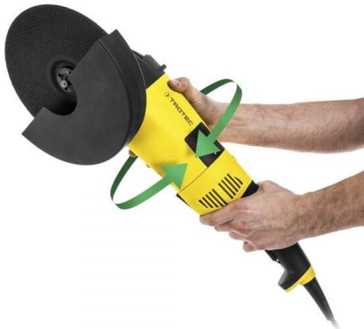 Из-за номинальной мощности двигателя 2000 Вт и большого диаметра диска 230 мм, без проблем выполняются даже твердое шлифование и глубокие разрезы в металле или камне.