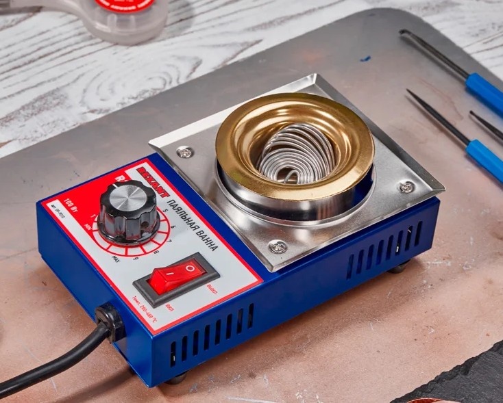 Паяльная ванна применяется для лужения проводников, кабельных наконечников в расплавленном припое.