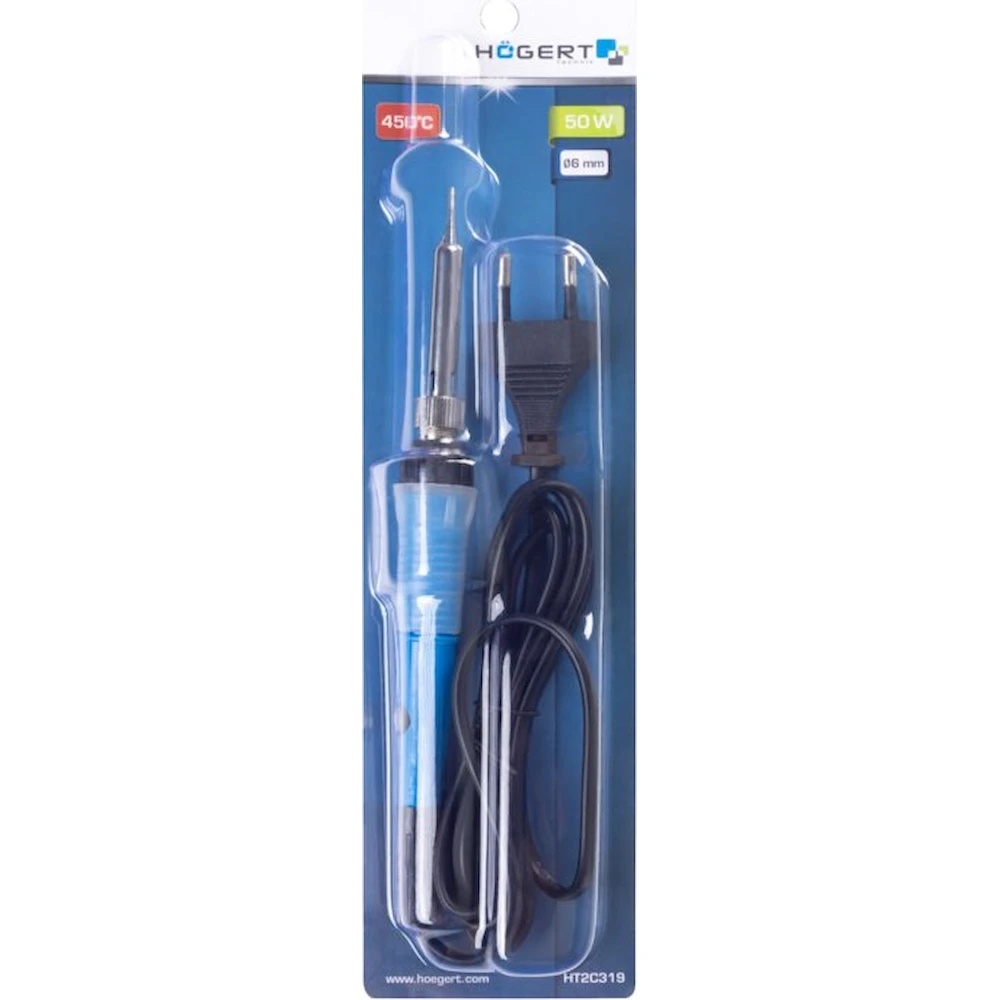 Hoegert HT2C319 — это электрический стержневой паяльник мощностью 50 Вт. Инструмент предназначен для точных работ с электронными компонентами, проводами и мелкими деталями.