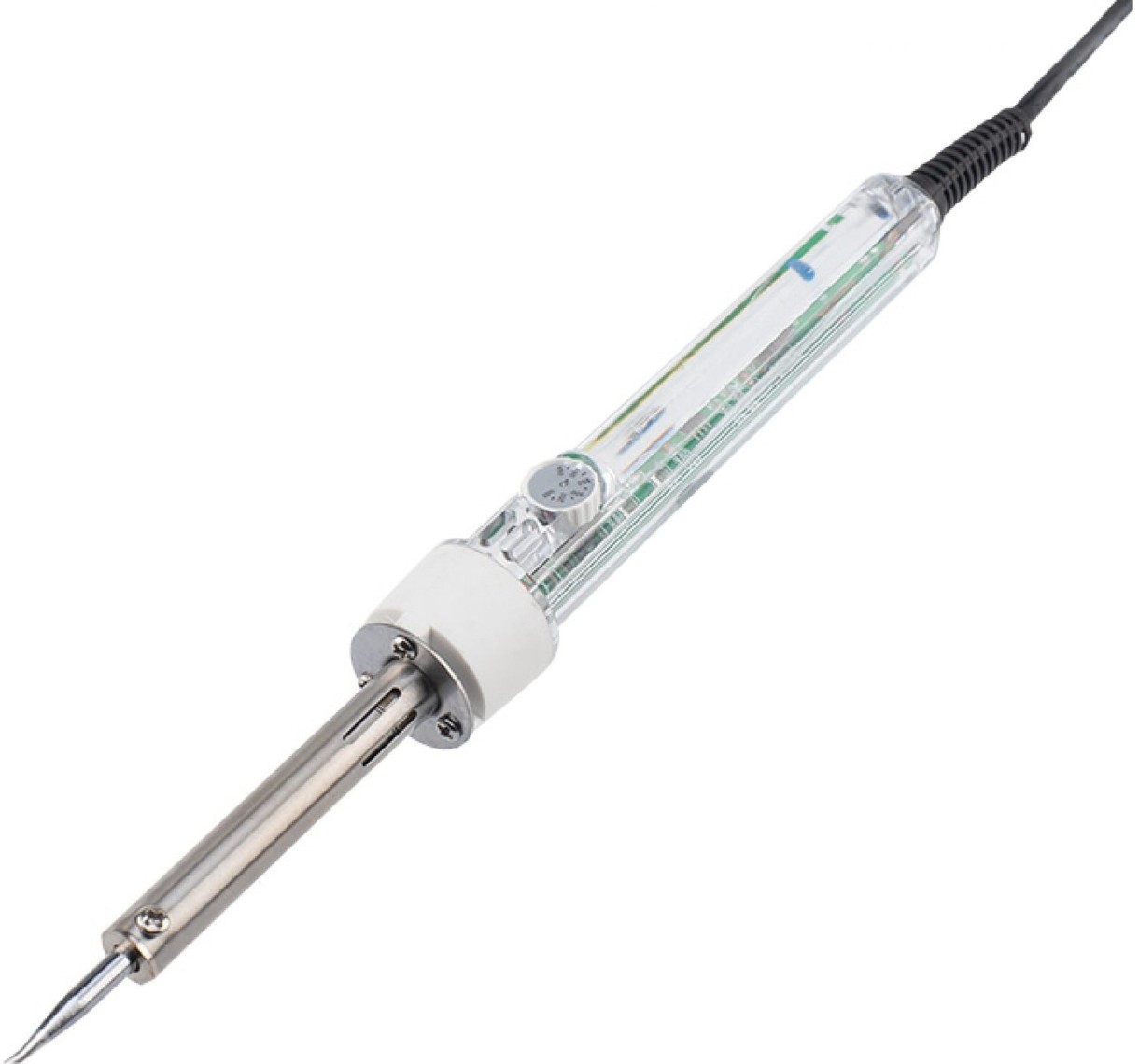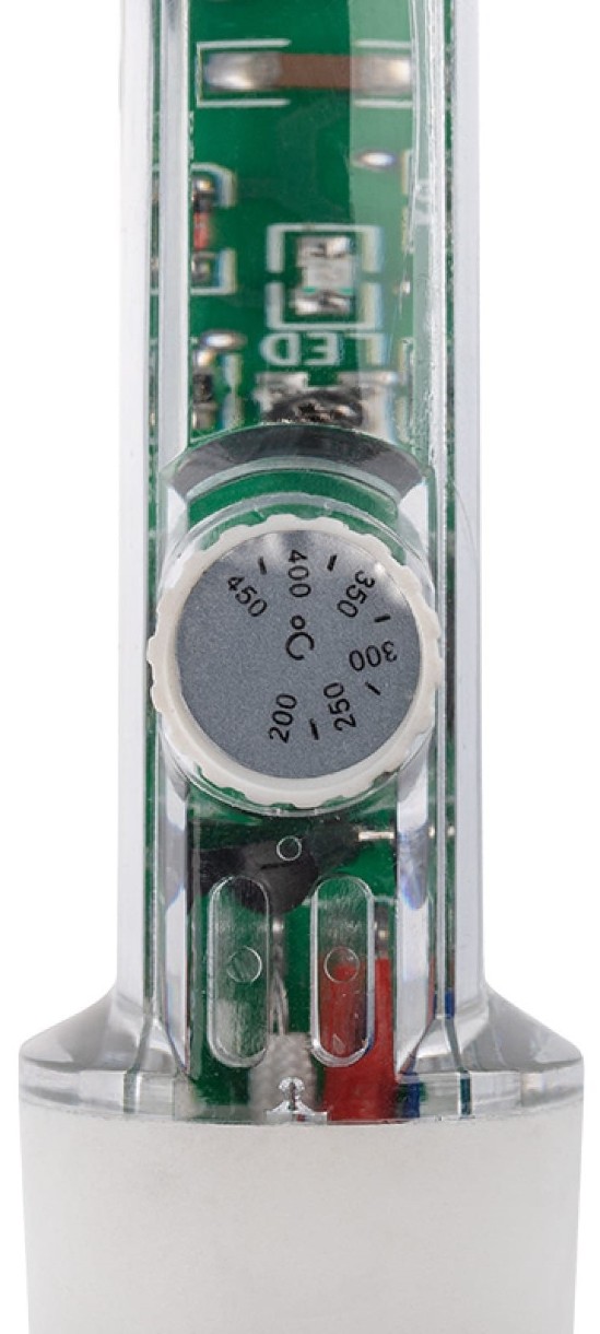 Паяльник с керамическим нагревателем и регулятором 220В, 30-50Вт REXANT ZD-708 12-0170 имеет возможность регулировки мощности в диапазоне от 30 до 50 Вт. Устройство имеет керамический нагревательный элемент, который быстро разогревает жало, отличается надежностью и продолжительным сроком службы. Ручка паяльника выполнена из прозрачного пластика с термостойкими свойствами. Длина сетевого шнура составляет 1,35 м.