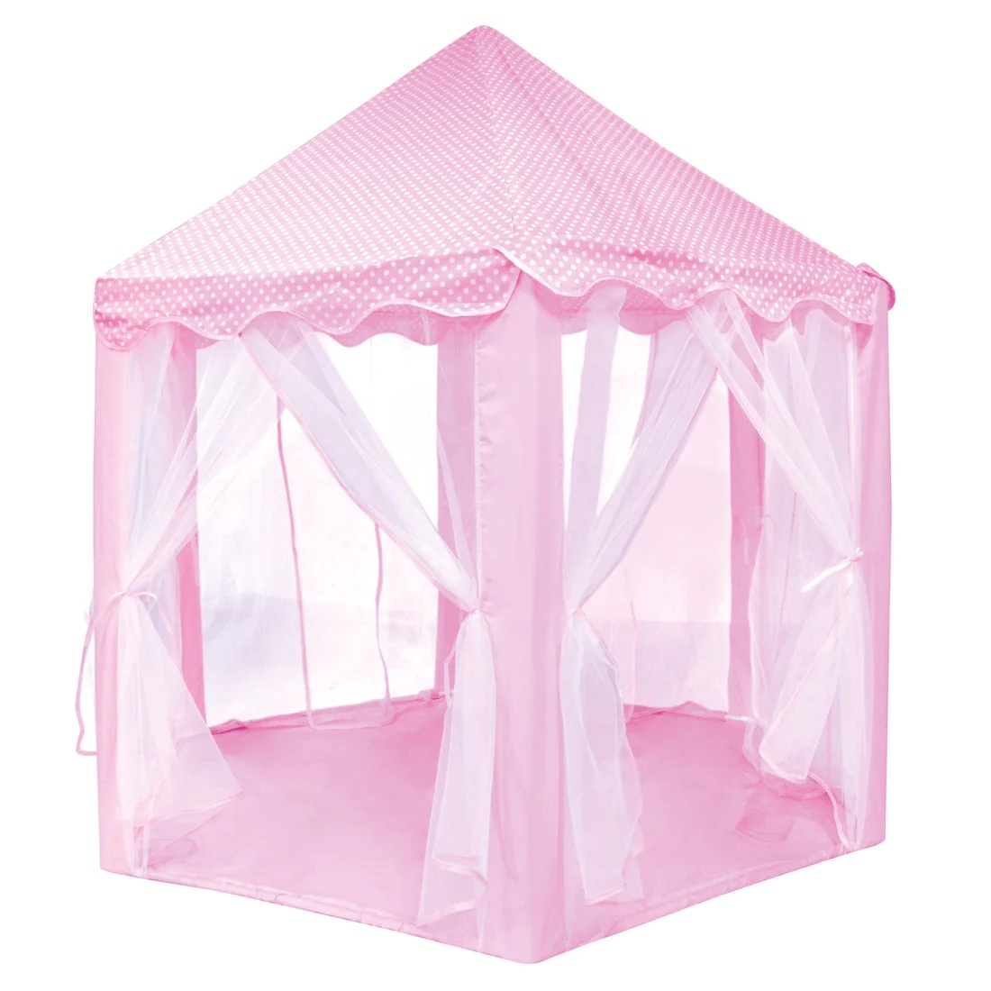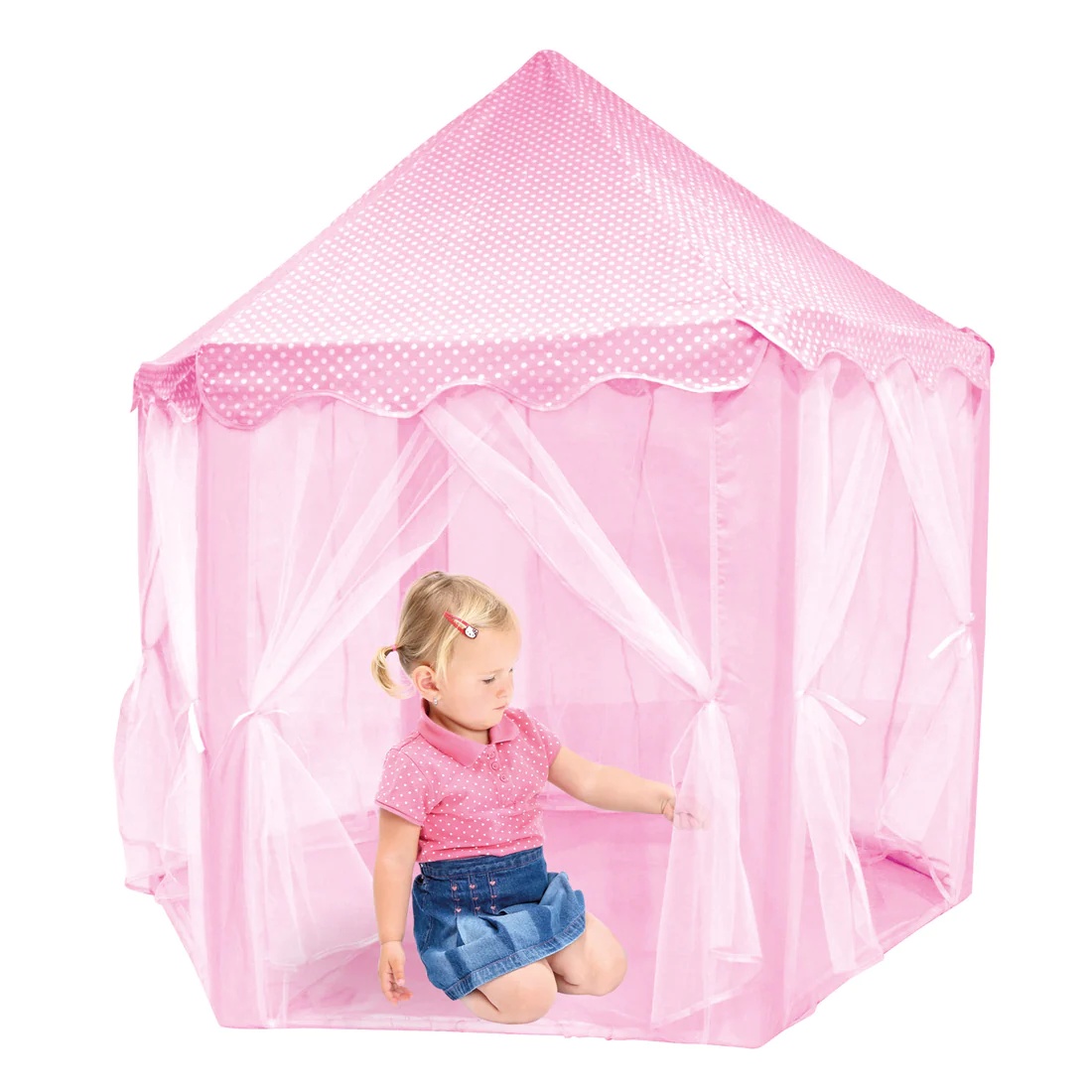 Милый оттенок, тонкие края, милый узор в горошек и гладкие боковые стенки, похожие на занавески, — все это делает эту игровую палатку прекрасным замком для принцесс. Неподвижные стойки из ПВХ, покрытие из прочной полиэфирной ткани и боковые стенки из сетки. Эту палатку можно установить или снять за считанные минуты, никаких инструментов не требуется! Палатку легко собрать и взять с собой куда угодно. Идеальный размер для двух-трех детей.