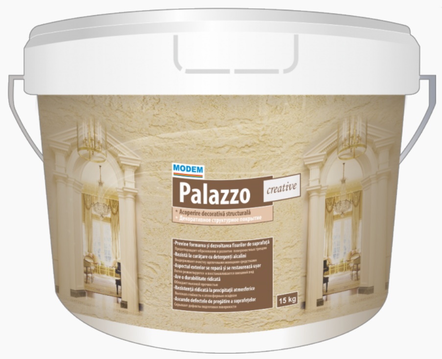 PALAZZO — это специально разработанное для фасадов декоративное покрытие. Благодаря синтетическим наполнителям и армирующим волокнам, содержащихся в составе PALAZZO, помимо отличного декоративного эффекта, покрытие обладает великолепными прочностными характеристиками. Особая структура материала позволяет получить разнообразные по фактуре поверхности. PALAZZO поможет выделить экстерьер Вашего дома среди других и создать неповторимую атмосферу Средиземноморья.