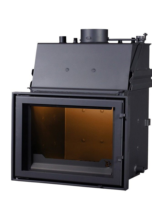 Небольшая, но достаточно мощная топка с корпусом из высокопрочной стали. Дверца выполнена из жаростойкого стекла. Топка отличается длительным горением, когда одной закладки дров хватает на несколько часов непрерывного горения. В качестве топлива используются сухие дрова длиной до 40 см. Данная модель оборудована водяным контуром.