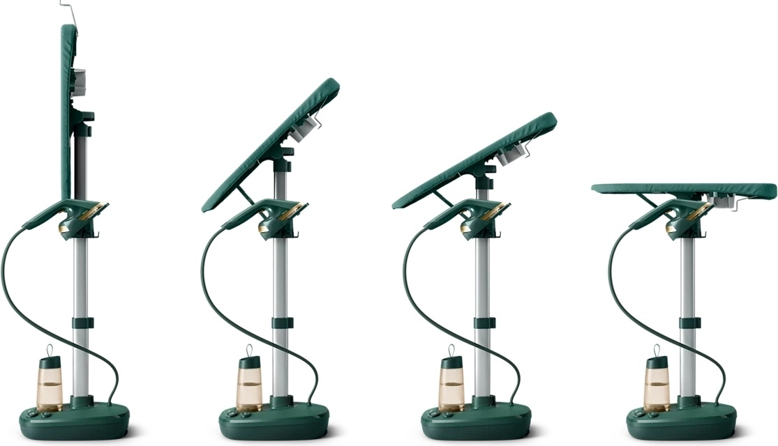 Регулируемую гладильную доску можно установить в любом положении для удобного глажения. В горизонтальном положении лучше всего гладить самые неподатливые ткани, а в вертикальном — более деликатную одежду.