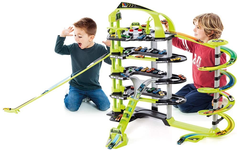 Большой многоуровневый гараж от итальянского бренда «Molto» имеет реалистичный дизайн современной парковки