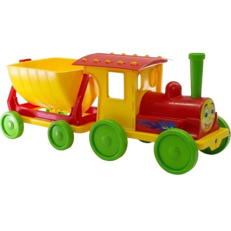 Поезд-конструктор станет личным подарком для малыша, который мечтал управлять поездом. Прицеп можно отсоединять, а ковш в прицепе переворачивается.