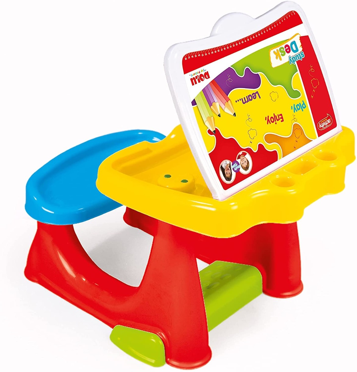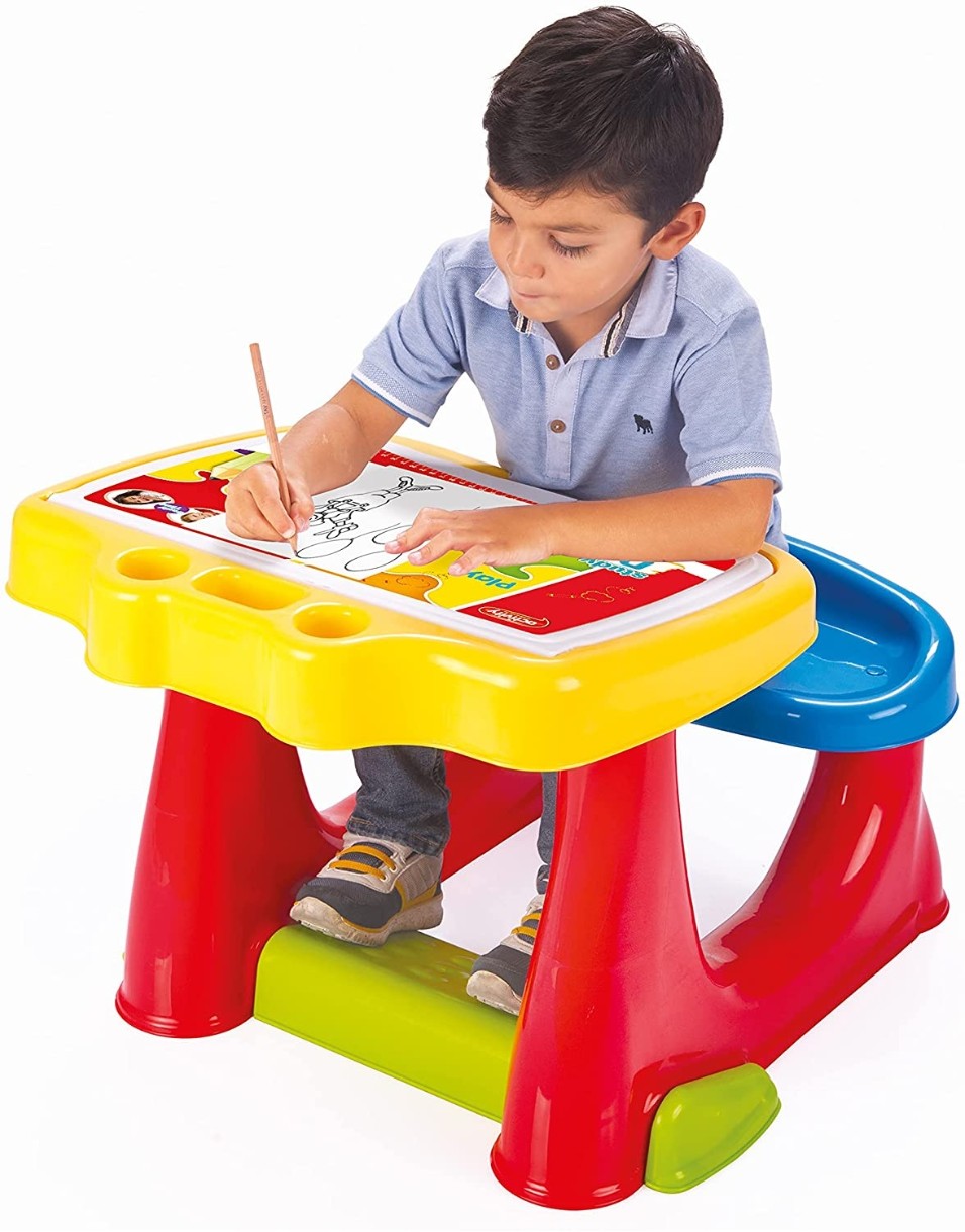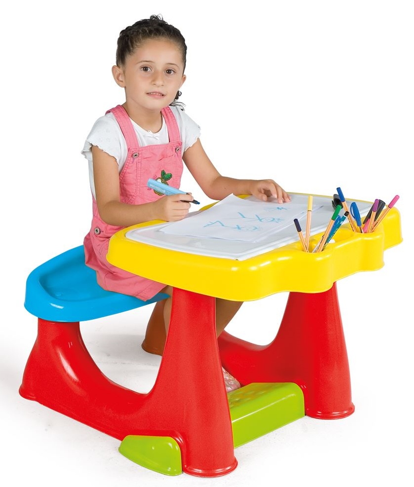 Для организации рабочего места для творческих занятий деток великолепно подойдет парта со скамейкой от компании «Dolu». Парта исполнена в ярких, радующих глаз цветах, гармонично впишется в интерьер детской комнаты. Благодаря легкому весу дети смогут, не привлекая взрослых, передвинуть стол в случае необходимости поближе к окну или в другое место. Под открывающейся крышкой место для хранения канцелярских принадлежностей, тетрадок или альбомов.