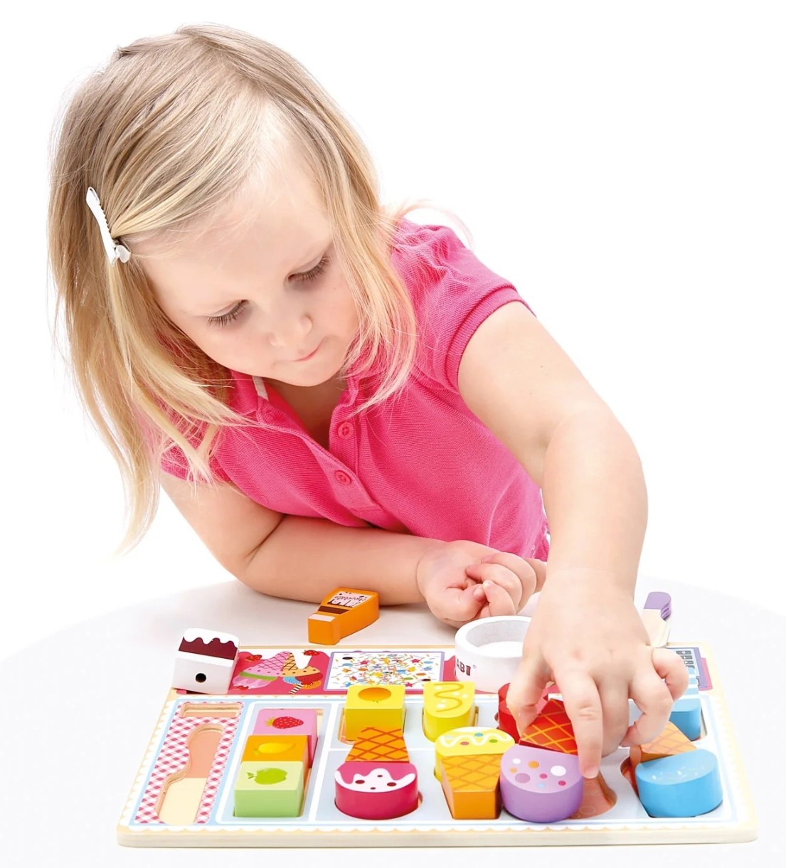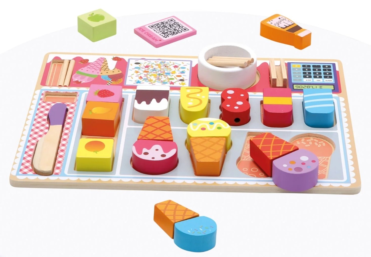 Деревянный 3D-пазл "Кафе-мороженое" с основанием из прочной фанеры. Кусочки за кусочками дети могут собирать кусочки мороженого по-разному и на разные вкусы. Благодаря прочным деревянным частям головоломки их легко брать и использовать. Разработанная подключаемая головоломка способствует распознаванию и названию всех видов мороженого или фруктовых вкусов в игровой форме. Он тренирует мелкую моторику и различение размеров, цветов и форм. Красочные виды мороженого различной формы, а также многочисленные аксессуары для кафе-мороженого побуждают к веселым ролевым играм. В игре можно тренировать координацию рук детей и улучшение практического интеллекта и когнитивных способностей.