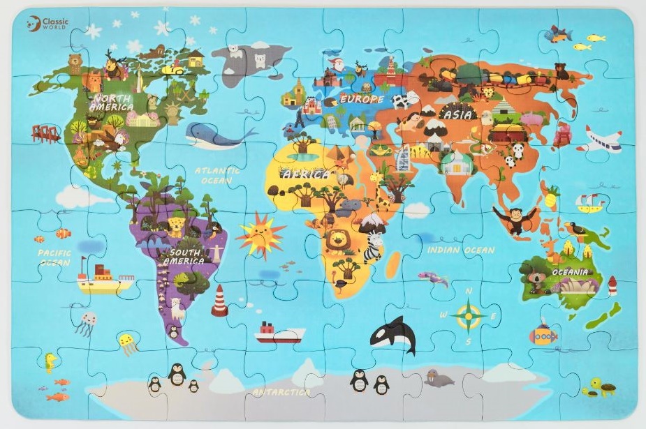 Знаете ли вы, какой материк самый большой? Пусть ваши дети решат головоломку, чтобы узнать и исследовать мир, изучая расположение, формы и названия всех континентов и океанов мира. Эта красивая головоломка с потрясающим оформлением идеально подходит для маленьких ручек.