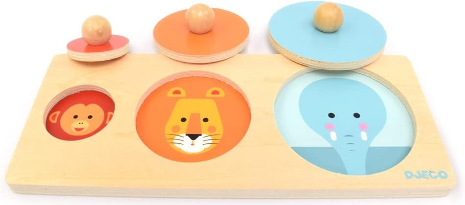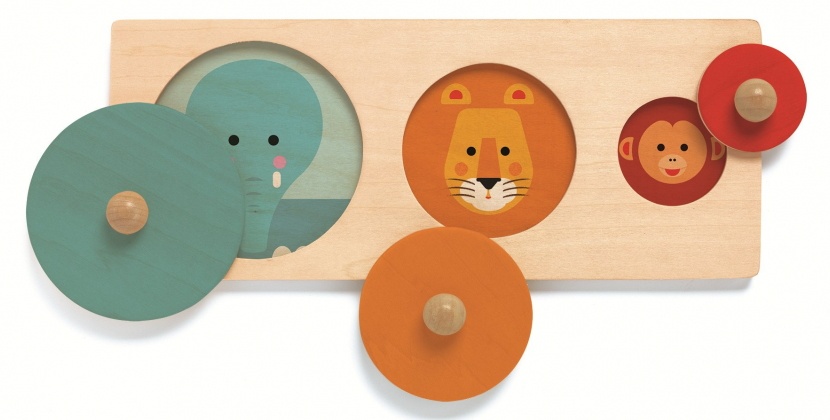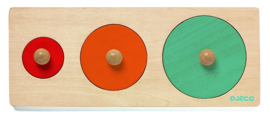 «Размер» - это развлекательная и в то же время развивающая игрушка, сделанная по типу вкладыша. В комплект входит деревянное поле (размер 23х10 см) с тремя одинаковыми геометрическими фигурами - кругами. Каждый круг отличается размером и цветом и каждый из них обладает маленькой ручкой, позволяющей извлечь «дверцу», в результате чего малыш познакомится с забавным животным, скрывающимся внутри. Игра развивает детскую логику, а также тренирует моторику рук. Помимо этого, она обучает детей усидчивости и внимательности.