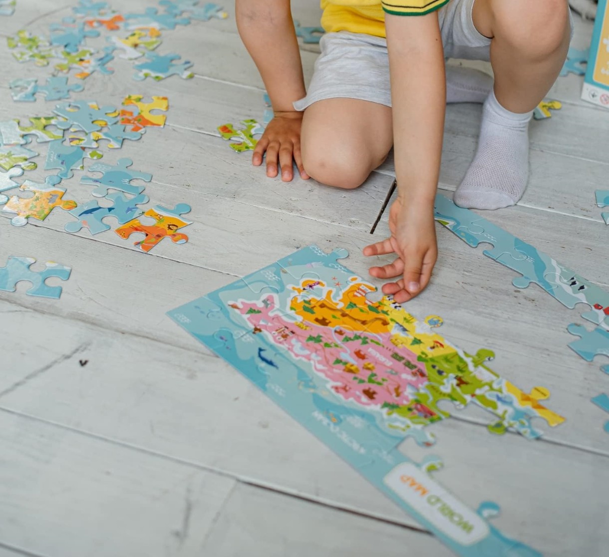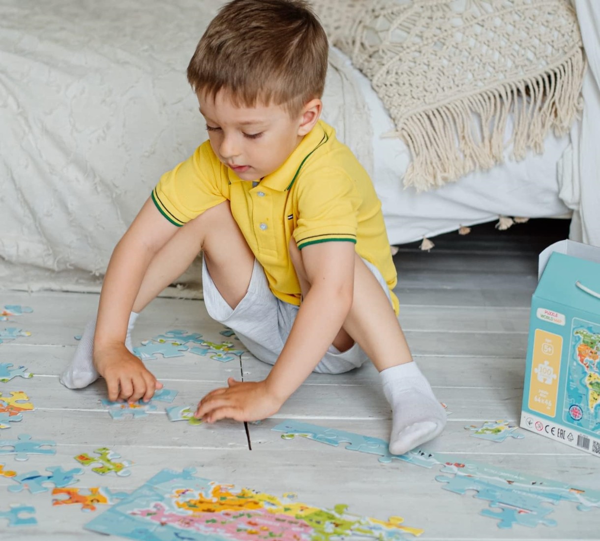 Собирая этот пазл, ребенок будет изучать не только континенты и океаны на английском языке, а также памятники архитектуры, животных и национальный костюм жителей разных уголков мира.