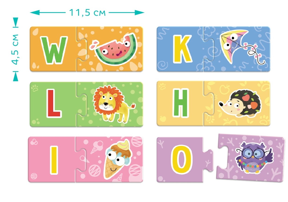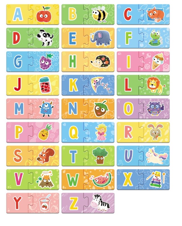 С помощью этой головоломки Duo вы легко сможете научить их английскому языку. Всего 26 элементов, из которых вам предстоит правильно соединить 2 половинки, одна из которых - изображение, а другая - буква английского алфавита. Этот набор станет отличным подарком маленькому любителю головоломок. Игры с половинками пазла тренируют усидчивость, логическое мышление и расширяют словарный запас.