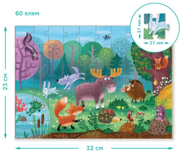 Приглашаем вас в волшебный мир леса с нашими пазлами “Чудо звери в лесу” из серии “Животные”, состоящими из 60 элементов.