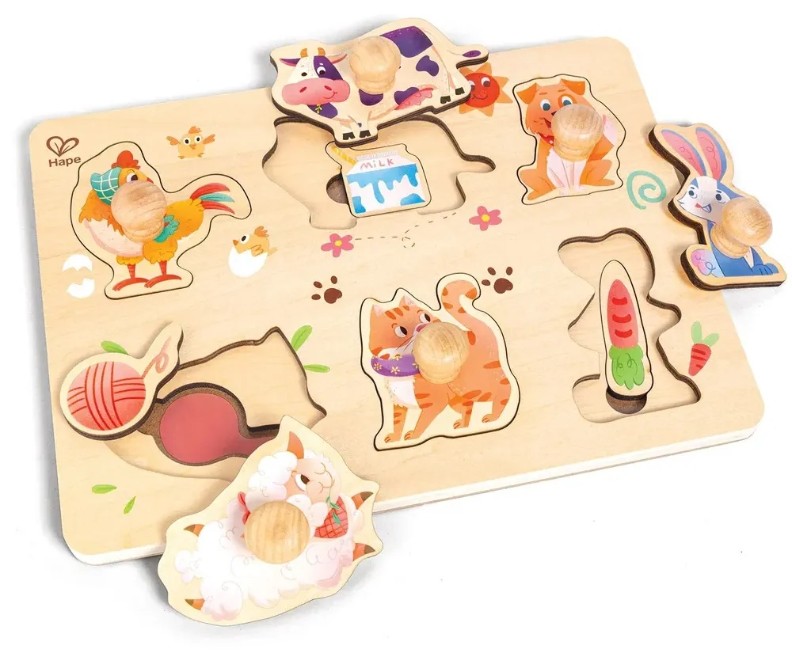 Изучайте внешний вид животных и их фермерскую жизнь с помощью этого пазла. Дети могут выбирать блоки по форме и вставлять их в специальные углубления.