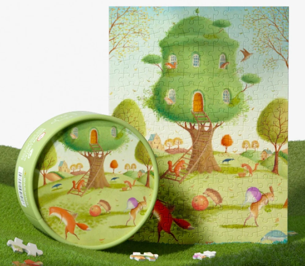 В этой головоломке животные заняты сбором ингредиентов возле домика на дереве.