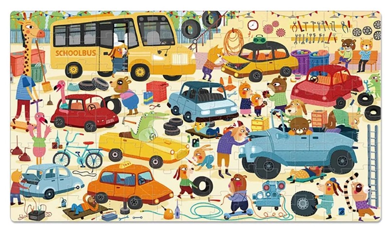 Пазл "Гараж" состоит из 104 элементов, сделанных из плотного картона. Размер пазла в собранном виде 40х76 см. С этим пазлом ваш ребенок погрузится в настоящую автомастерскую, встретит множество инструментов, поможет отремонтировать машины и другие транспортные средства. Пазлы развивают логику, усидчивость, мелкую моторику, внимание.