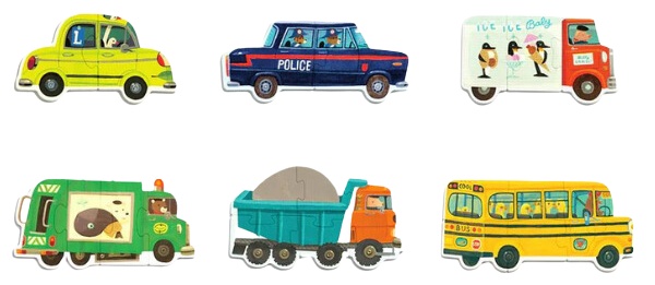 Пазлы варьируются от 2 до 6 частей, адаптированные для того, чтобы помочь маленьким детям сделать первые шаги в сборке пазлов.