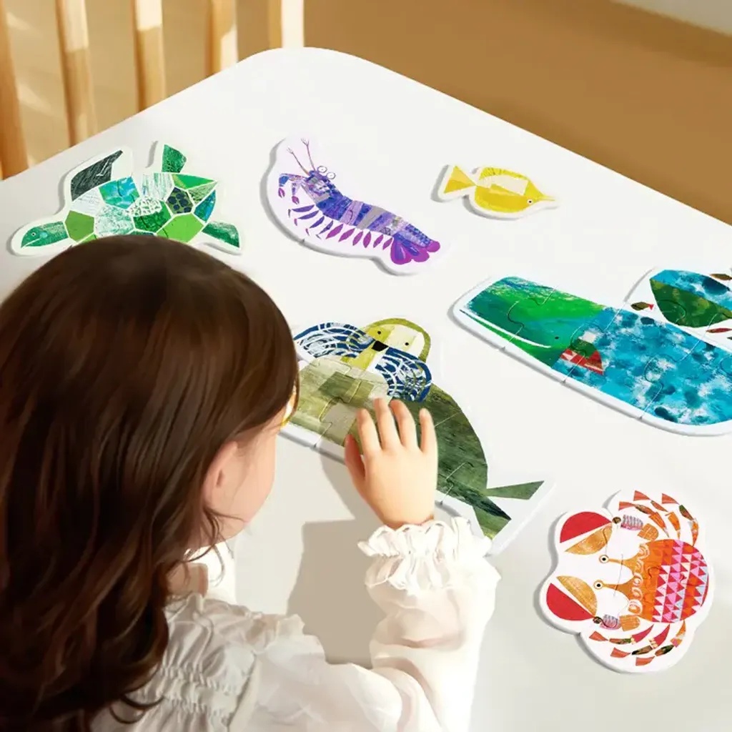 Серия «Первый пазл художника» представляет собой наборы красиво оформленных пазлов, созданных для развития художественных интересов и когнитивных навыков с раннего возраста. Разработанные в сотрудничестве с известными художниками со всего мира, эти пазлы выполнены из высококачественного белого картона, который прочен и устойчив к трещинам. Используются чернила на соевой основе, нетоксичные, что устраняет неприятные запахи и обеспечивает безопасную среду для детей.