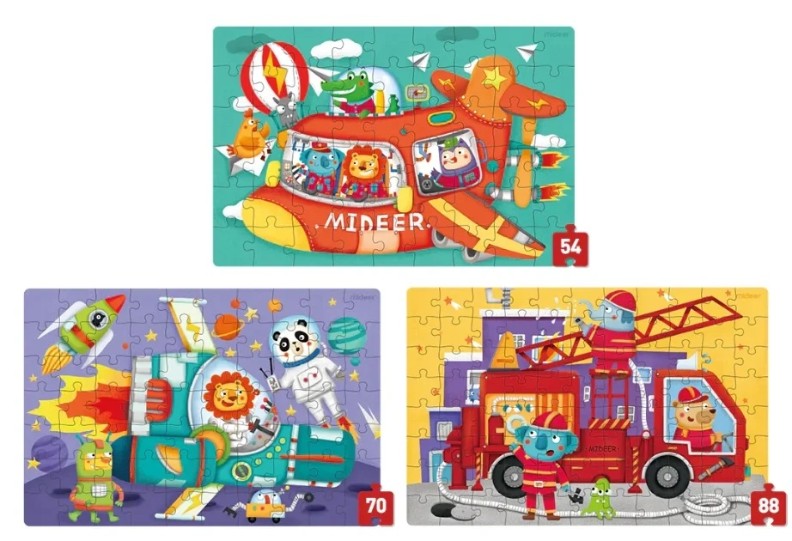 Серия развивающих пазлов - это красочные и познавательные пазлы, которые шаг за шагом будут развить потенциал ваших детей. Эта серия, разделенная на семь уровней, соответствует развитию детей с целью улучшения их логического мышления, моторики, внимания, когнитивных способностей, а также развития их концентрации. Иллюстрации к этой серии, нарисованные французским художником и иллюстратором Maud Lienard отлично развивают художественный вкус. Развивающий пазлы 3 в 1 "Транспорт" представляет собой четвертый уровень сложности в данной серии. Набор состоит из 3 отдельных пазлов разной сложности, 54/70/88 элементов. В набор входит всего 212 элементов пазла.