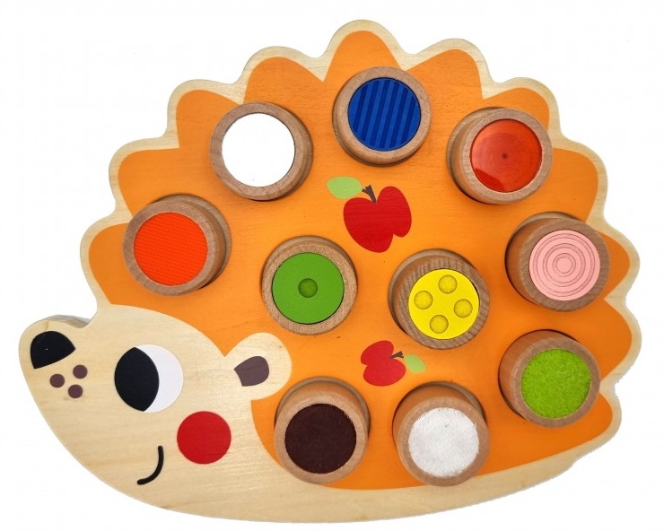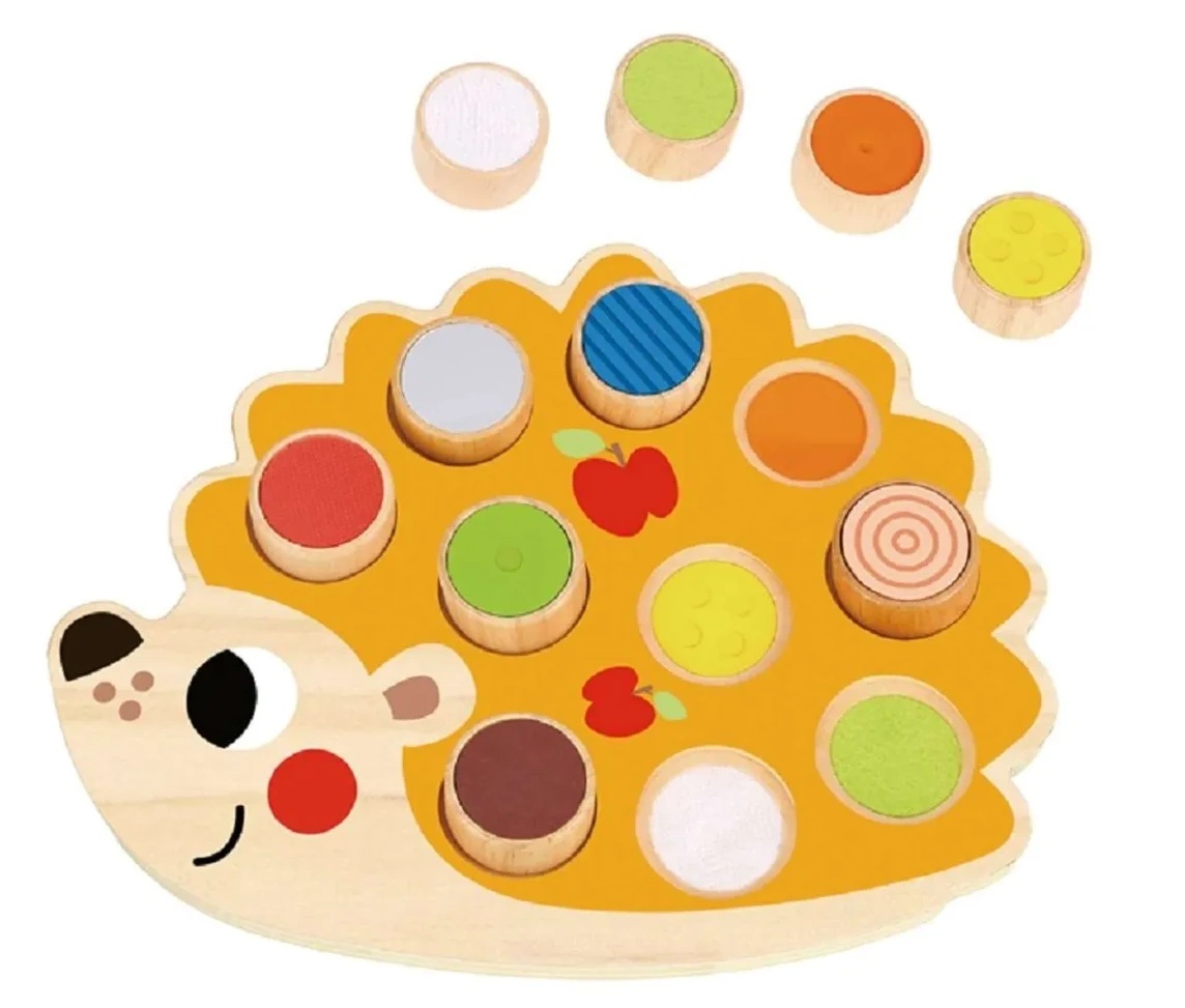 Оригинальный тактильный сортер в виде Ежика от Tooky Toy. Сортер состоит из игрового поля в виде Ежика и 10 деревянных вкладышей с сенсорными поверхностями. Каждый вкладыш соотносится с углублениями на игровом поле исходя из цвета или текстуры. Тактильные игрушки дают маленьким детям много возможностей для развития своих чувств. Это оригинальная игрушка, которая обязательно привлечет внимание ребенка разнообразием цветов, акцентируя внимание на его кинестетическом развитии. Игры с сортером способствуют развитию мелкой моторики и зрительно-моторной координации. Обучают малыша формам и цветам, развивают логику, пространственное восприятие, навыки решения проблем и дают ощущение собственных успехов и достижений. Игрушка изготовлена из высококачественных материалов, покрыта нетоксичной краской на водной основе и совершенно безопасна для малышей. Для детей от 12 мес.