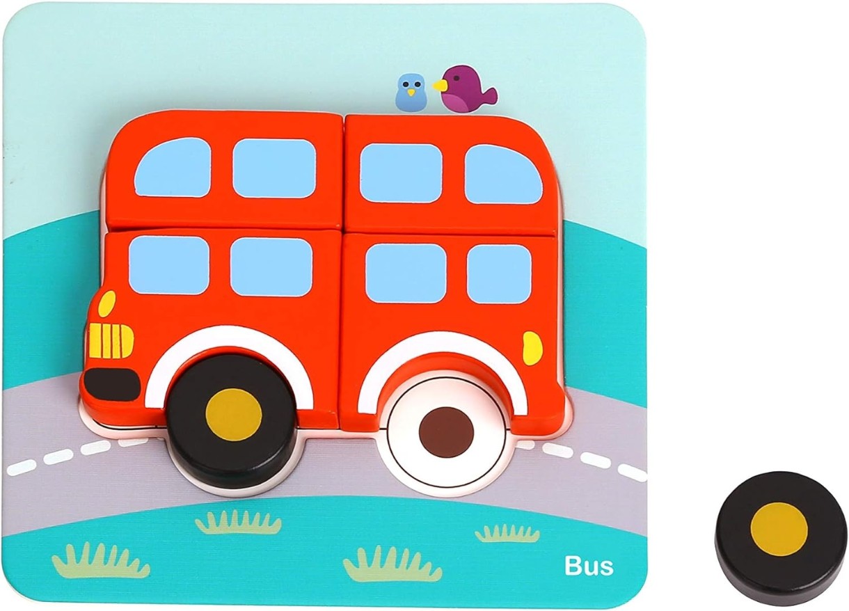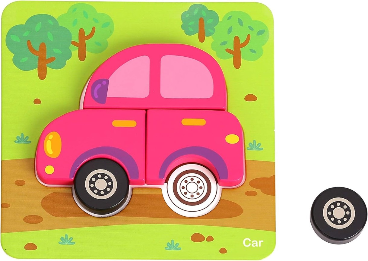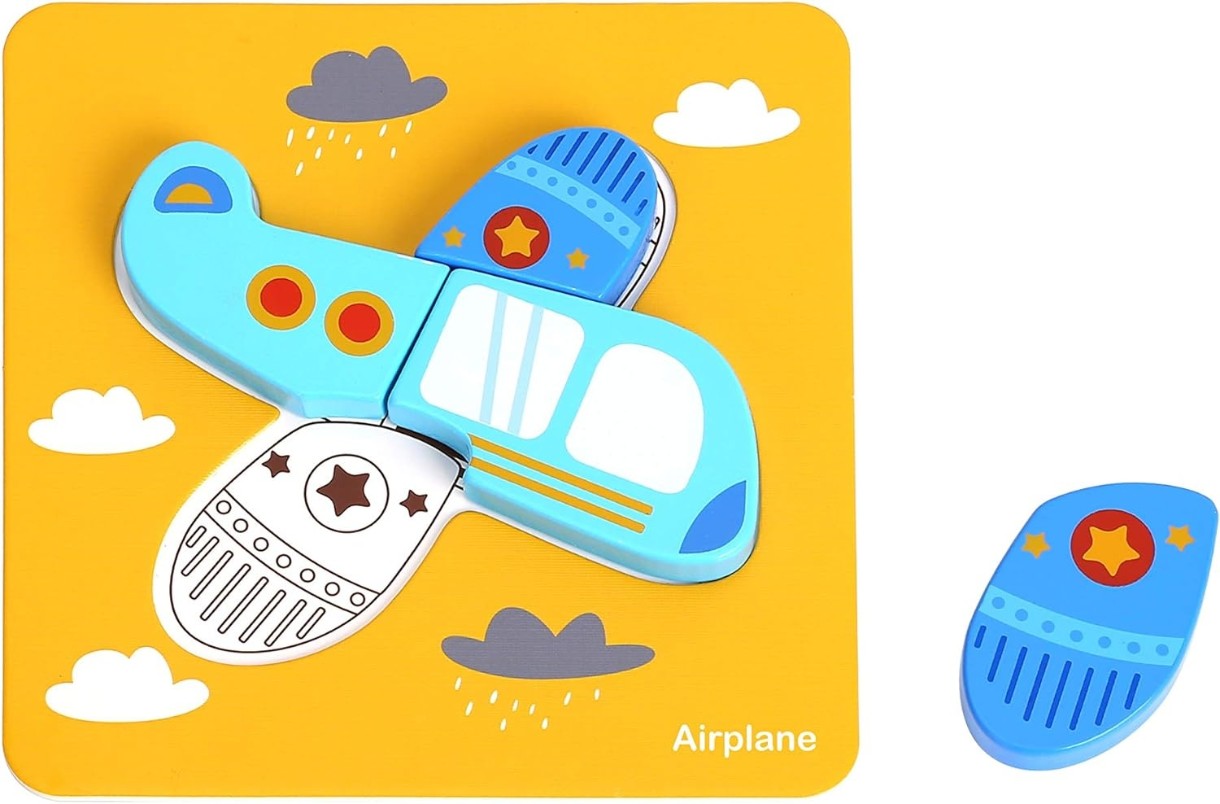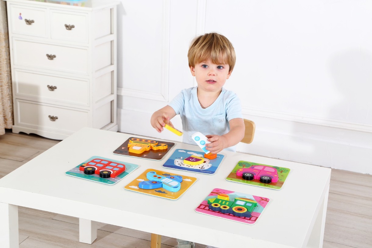 Красочный набор деревянных пазлов-вкладышей от Tooky Toy. Идеально для развития Вашего малыша! Набор состоит из 6 пазлов с изображениями транспорта: машины, паровоза, парохода, трактора, автобуса и самолета. Размер каждого изображения 17х17 см.