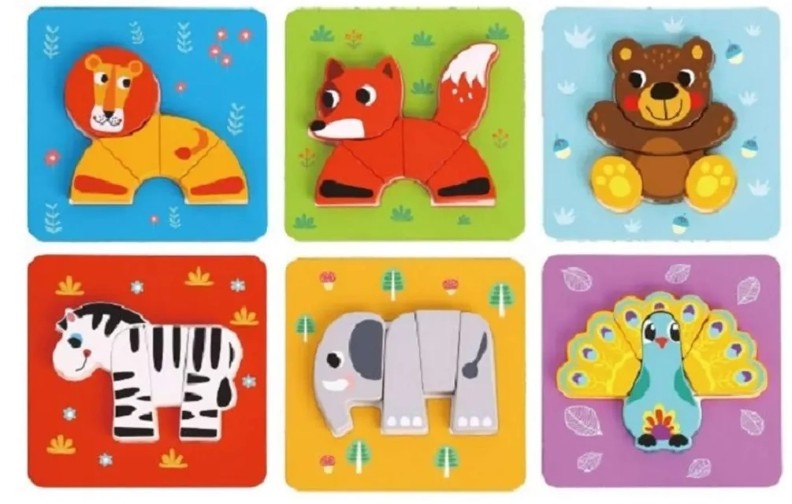 Красочный набор деревянных пазлов-вкладышей от Tooky Toy. Идеально для развития Вашего малыша! Набор состоит из 6 пазлов с изображениями животных: льва, лисы, мишки, слона, зебры и павлина. Размер каждого изображения 17х17см. Игры с пазлами развивают мелкую моторику, пространственное восприятие, логику, навыки решения проблем и дают ощущение собственных успехов и достижений. Игра-головоломка - это прекрасный способ для детей развлечься, развивая физические когнитивные и эмоциональные навыки. Игрушка изготовлена из высококачественных материалов, покрыта нетоксичной краской на водной основе.
