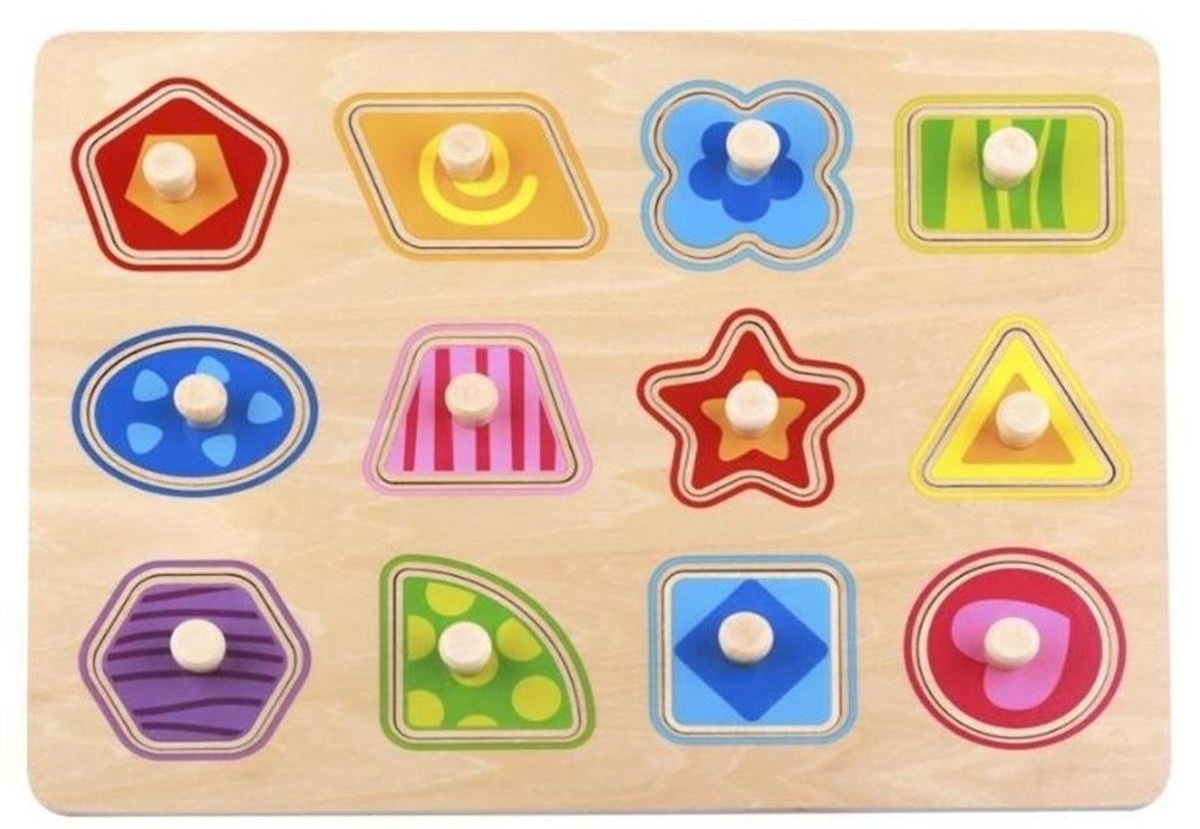 Пазлы с колышками отлично подходят для обучения малышей брать предметы в руки и помогают им развивать хватку пальчиками. Эта головоломка с колышками от Tooky Toys помогает маленьким детям развивать и распознавать простые формы и цвета. С помощью 12 частей головоломки, которые можно поднимать и исследовать, ваш ребенок научится подбирать не только форму, но и соответствующий цвет на вставке под ней.