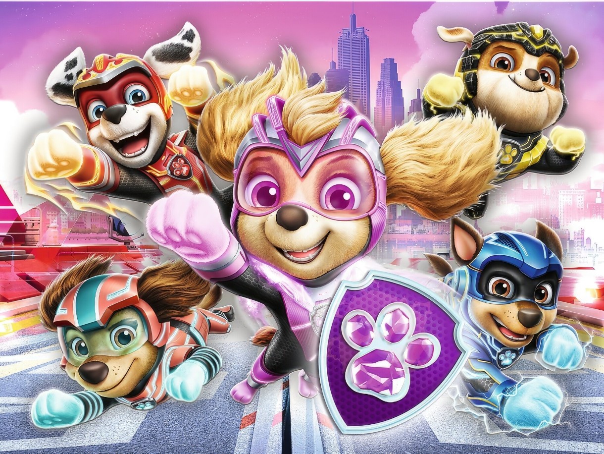 Пазлы на 100 элементов с изображением команды веселых щенков - главных персонажей нового канадского компьютерно-анимационного фильма "Щенячий патруль: Мегафильм", основанного на популярном детском телесериале "Щенячий патруль".