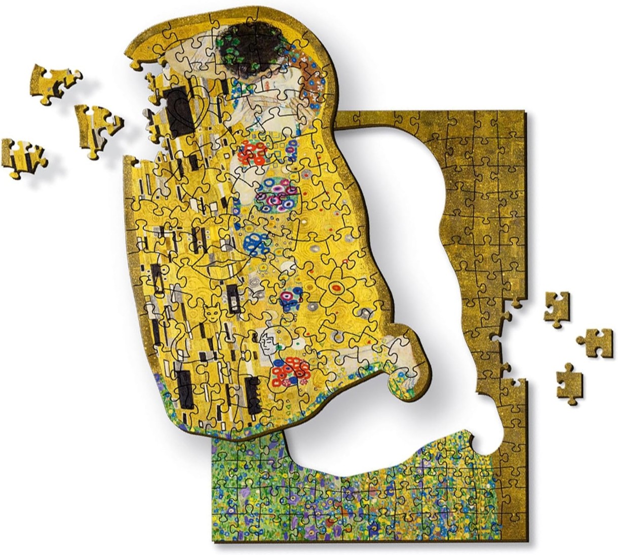 Деревянный пазл из Trefl на 200 элементов с изображением всемирно известной картины Густава Климта «Поцелуй».