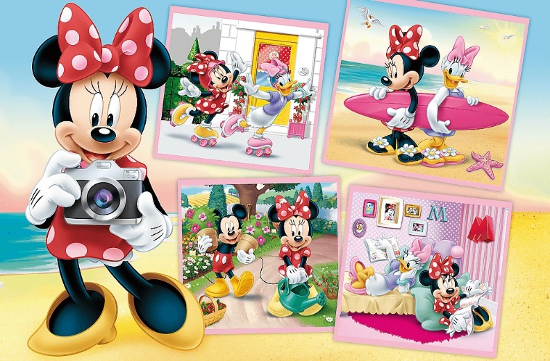Пазлы на 60 элементов с изображением в виде коллажа культового персонажа популярных анимационных сериалов Уолта Диснея - любимой Мышки Минни, которая весело проводит свое свободное время с друзьями.