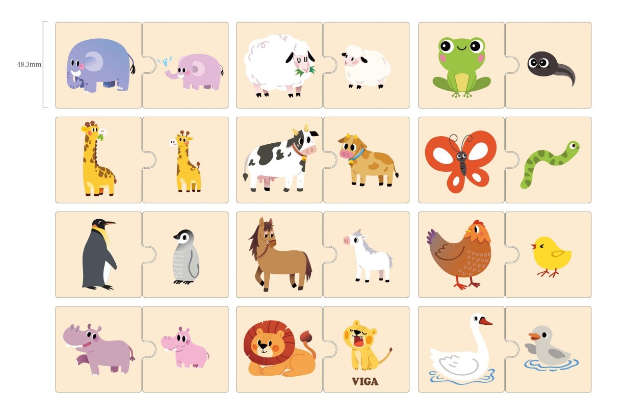 Объедините 12 родителей-животных и их детенышей в этот набор пазлов из 24 деталей!