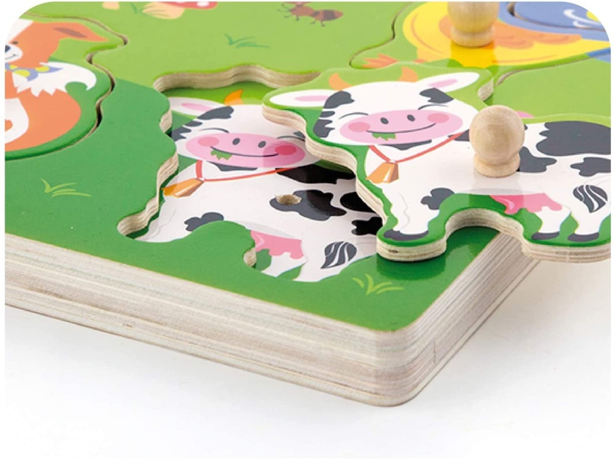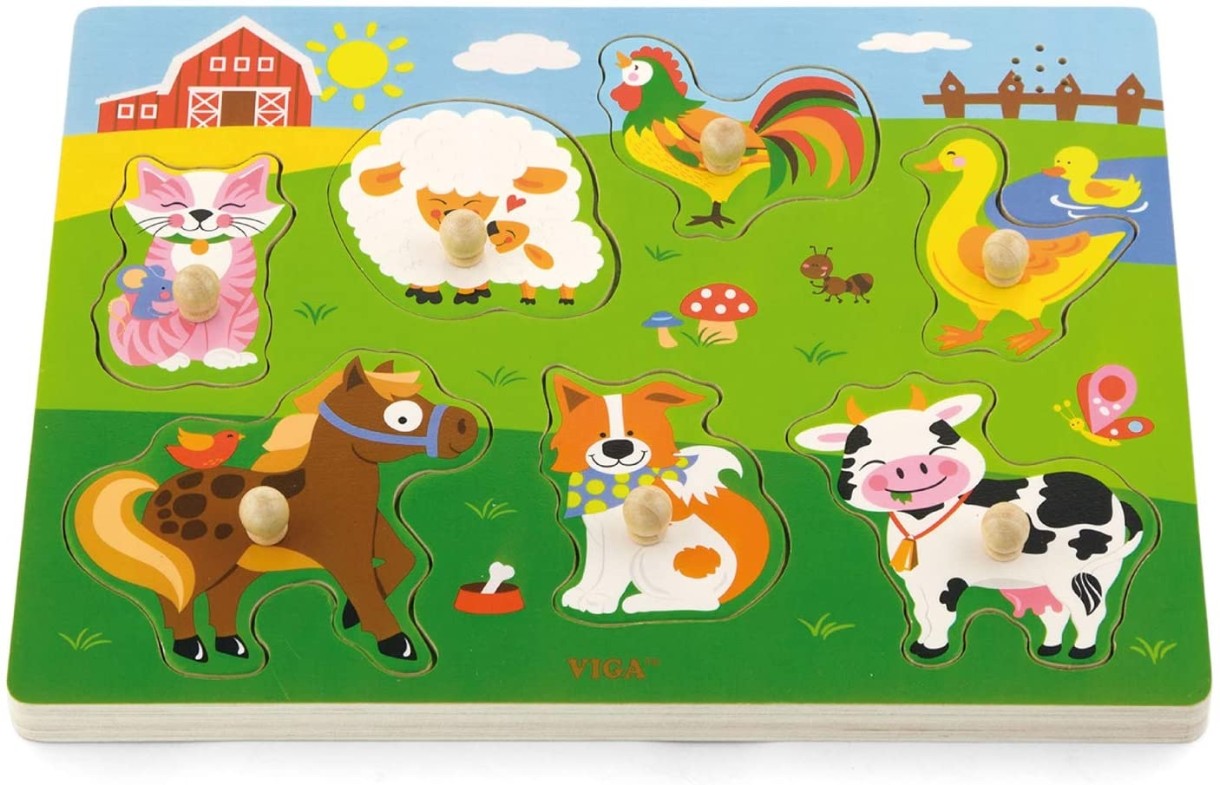 еревянная звуковая головоломка Farma от Viga — одна из ведущих игрушек, которая не только послужит традиционной головоломкой, но и позволит ребенку узнать настоящие звуки и формы животных. Такая игра для ребенка от 18 месяцев поможет сформировать точность движений рук и улучшить зрительно-моторную координацию. Красочные пазлы радуют глаз и побуждают к игре. В набор входят 7 звуковых пазлов, которые при правильной расстановке издают звук выбранного животного. Пазлы имеют ручки, благодаря которым малыш сможет легко их брать.