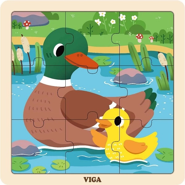 Классический деревянный пазл из 9 элементов в деревянной рамке поможет малышу развить моторику рук, координацию работы рук и глаз, мышление, логику, познакомит с животным миром.