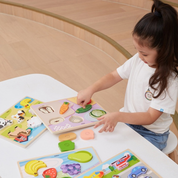 Задача ребёнка — вставить фигурки овощей в соответствующие места на цветной основе, где для удобства нанесены контуры овощей. Яркие иллюстрации делают игру наглядной и привлекательной.