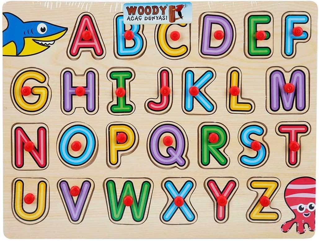 Эта головоломка представляет собой английский алфавит, буквы которого ребенок должен распознать и разместить в соответствующем месте. Сделать это будет очень легко благодаря кнопкам на каждой детали.