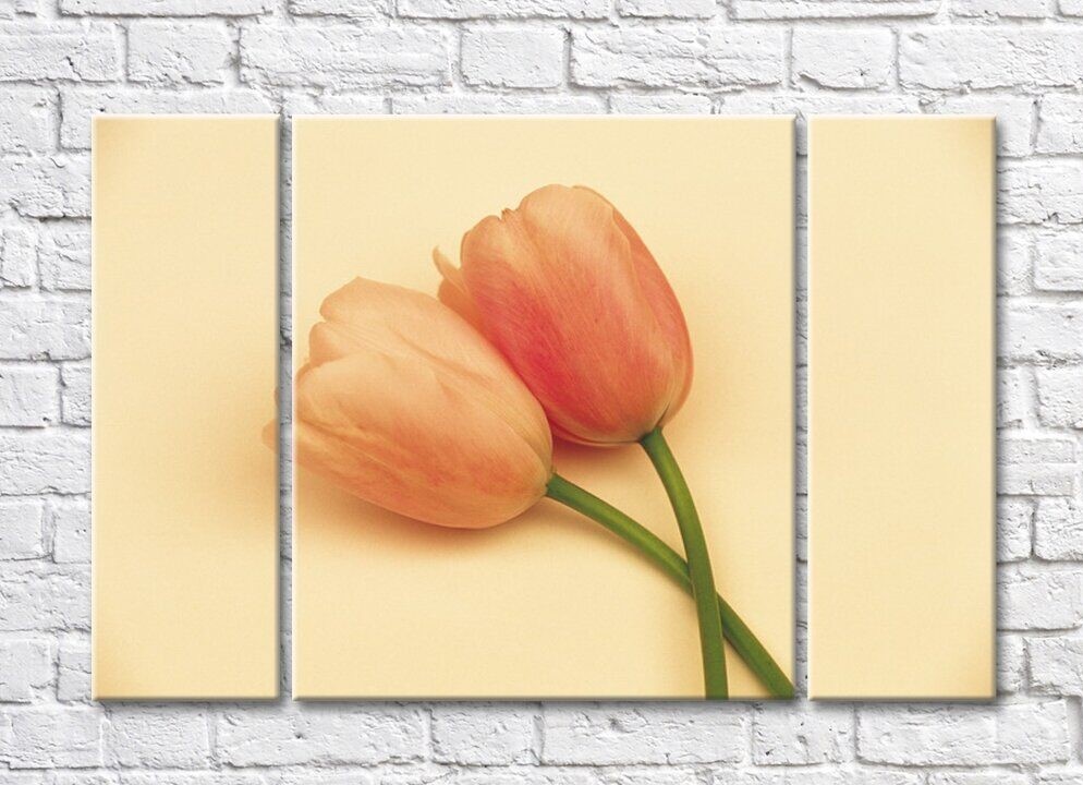 Картина Rainbow Peach tulips on a beige background (500508)