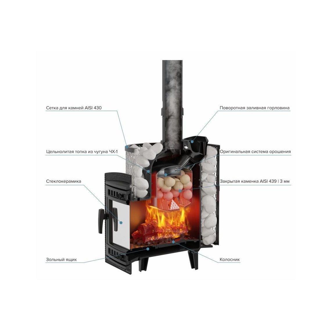 Это самая передовая печь, чугунная топка печи, в сетке из углеродистой стали, способна прогреть помещение до 22м3. Модель - обсыпная. Долгий срок службы у печи гарантирует материал изготовления ХЧ1 — хромистый чугун, благодаря своим свойствам, срок службы печи из такого материала выше чем у нержавейки.