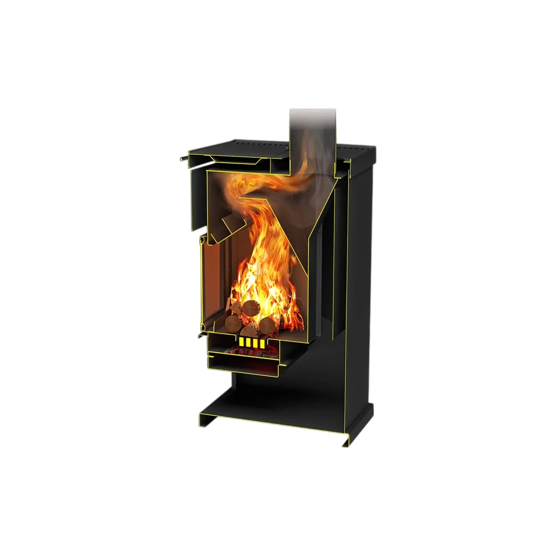 - Не только служит как камин, но и отапливает помещение.